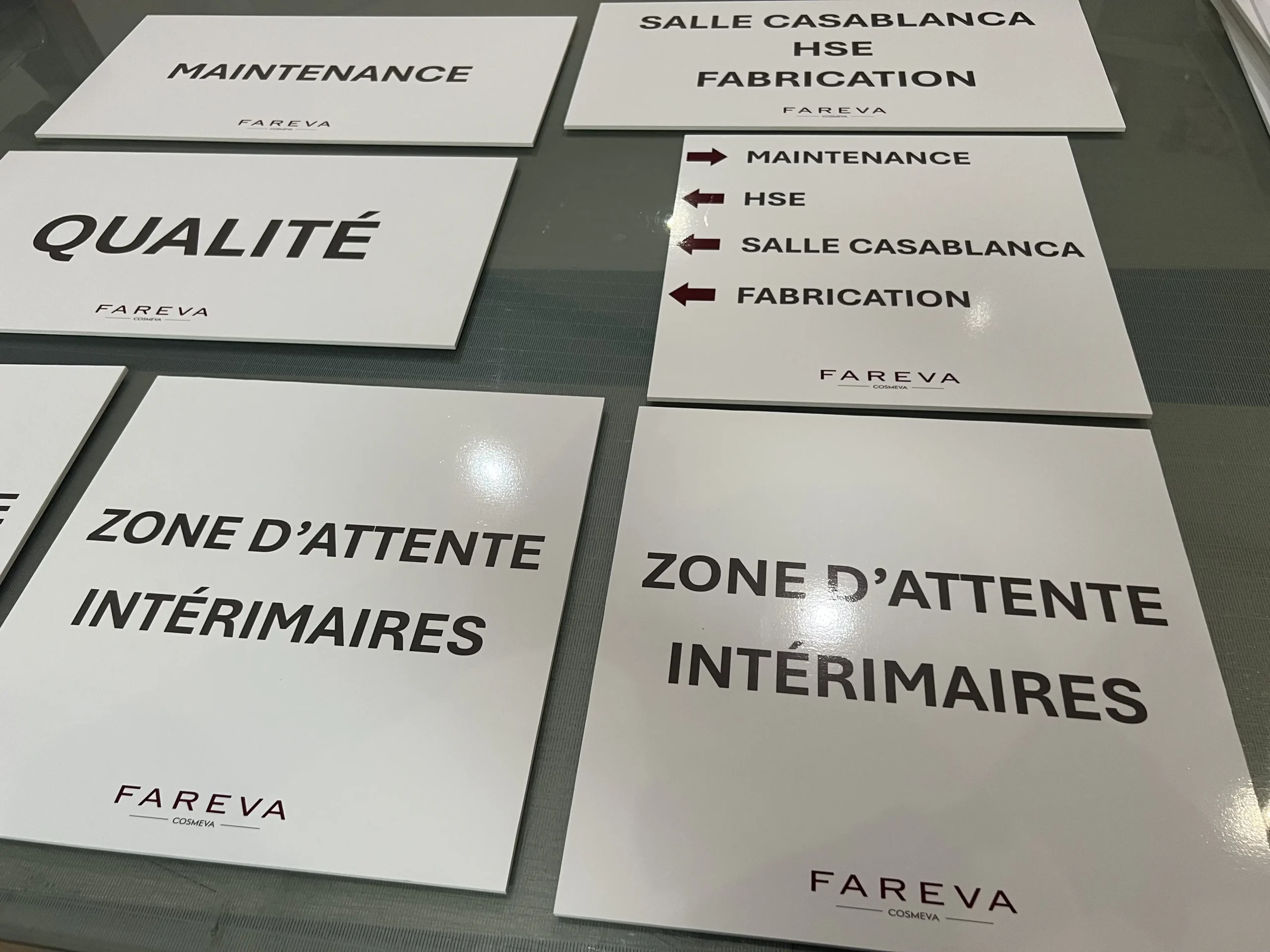 Nous utilisons une variété de matériaux selon le type de signalétique souhaité, notamment :